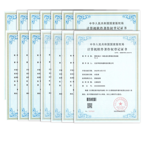 通讯驱动软件、人机交互软件、显示驱动系统、接口驱动软件、嵌入式图形显示系统、 电路保护控制系统、嵌入式一体机模拟报警控制系统等14项软件注册证书。